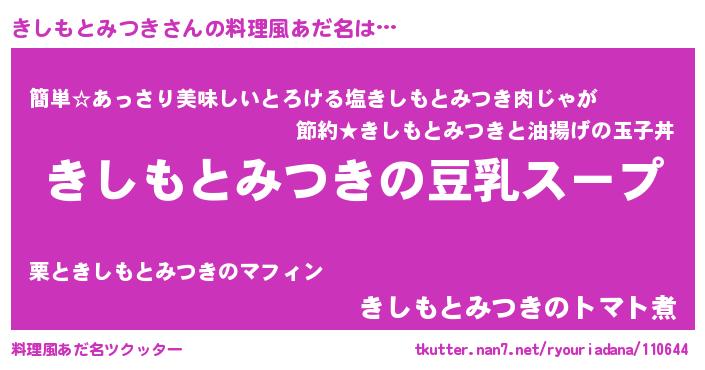 | 胡散臭い通販商品みたいなあだ名 | 『信頼と実績のサプリメント…その名も「きしもとみつき」』 |