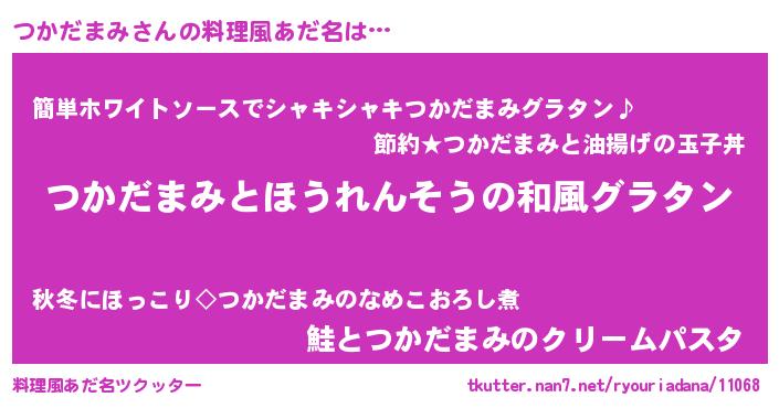 | ポケモン風あだ名 | 『ツカキング』『ヒツカダマミ』 |