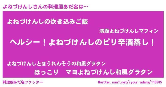 | 胡散臭い通販商品みたいなあだ名 | 『芸能人もオススメする高麗人参…その名も「よねづけんし」』 |