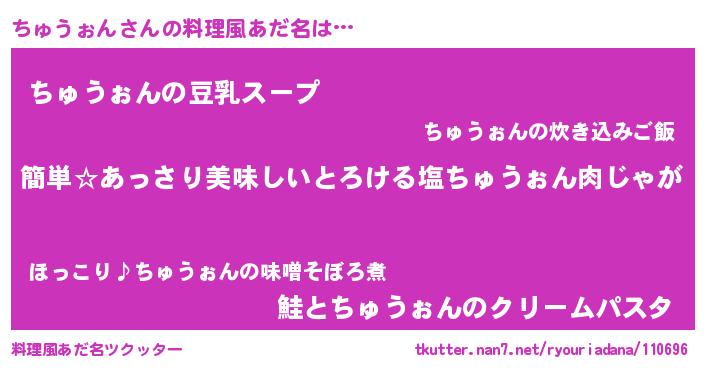 | ヘコむあだ名 | 『ちゅうぉん(震え声)』『ちゅぷりん』 |
