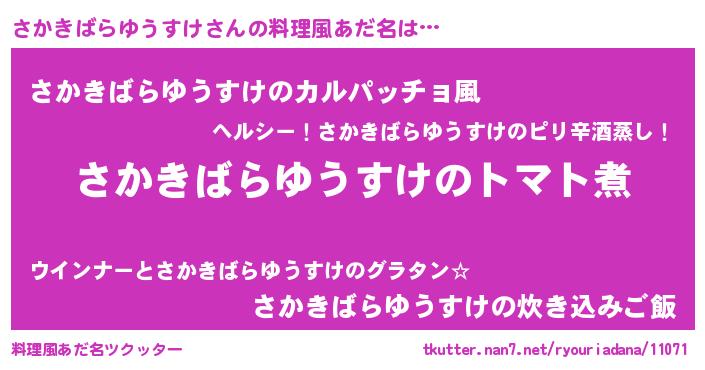 | 胡散臭い通販商品みたいなあだ名 | 『100人中100人が認めたイリジウム磁石…その名も「さかきばらゆうすけ」』 |