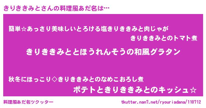 | ヘコむあだ名 | 『きりききみと(遠い目)』『きりっちょ』 |