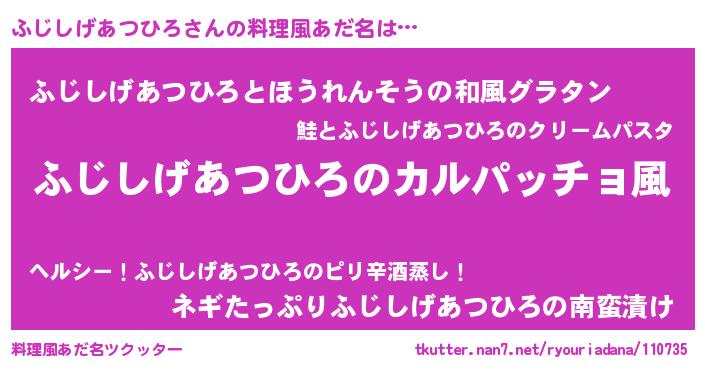 | 意味不明あだ名 | 『住所不定無職ふじしげあつひろ(41歳)』 |