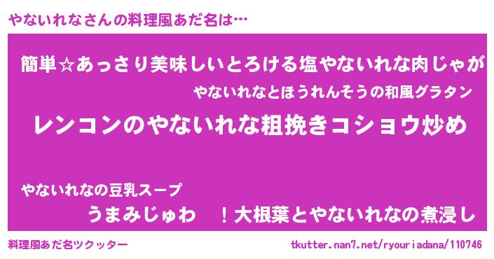 | ヘコむあだ名 | 『やないれな(笑)』『酢こんぶ』 |