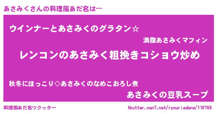 | 意味不明あだ名 | 『自称あさみく』『あさみくフォーエバー』 |