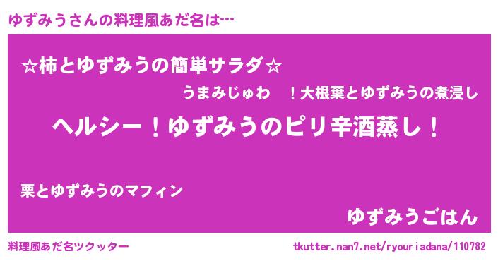 | 意味不明あだ名 | 『自称ゆずみう』『なめこ科ゆずみう属』 |