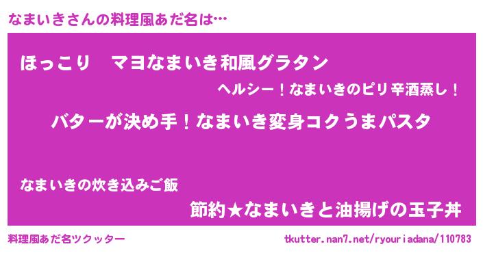 | ヘコむあだ名 | 『なまふぇ~』『なまいき(小並感)』 |