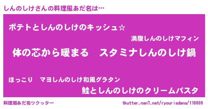 | 意味不明あだ名 | 『しんのしけフォーエバー』 |