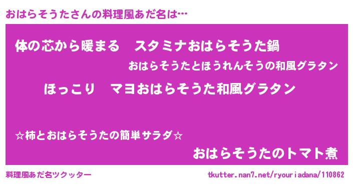| 意味不明あだ名 | 『住所不定無職おはらそうた(89歳)』 |