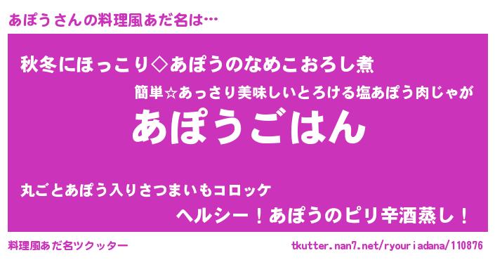 | ヘコむあだ名 | 『あぽう(笑)』『あぽにー』 |