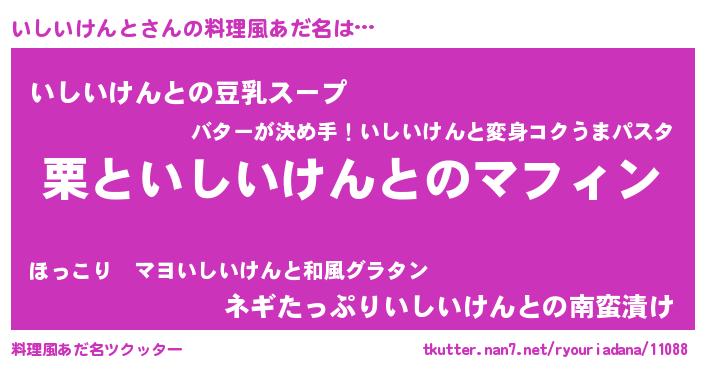 | 胡散臭い通販商品みたいなあだ名 | 『信頼と実績のサプリメント…その名も「いしいけんと」』 |
