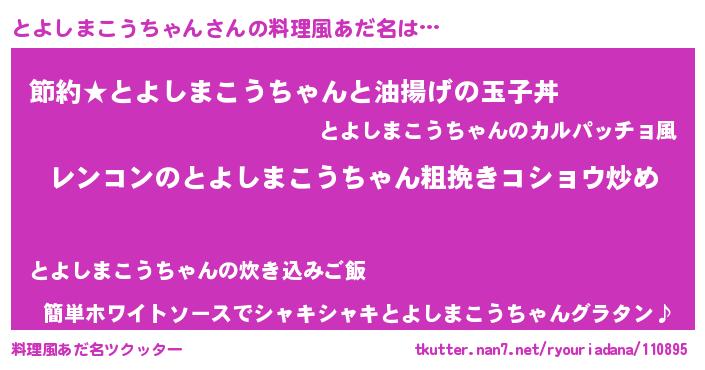 | 胡散臭い通販商品みたいなあだ名 | 『テレビで話題の高麗人参…その名も「とよしまこうちゃん」』 |