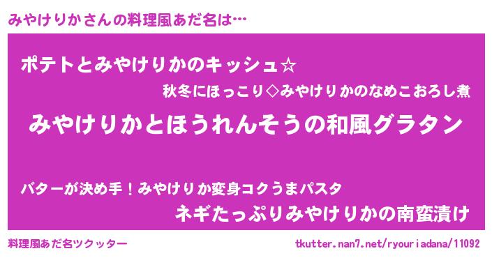 | ポケモン風あだ名 | 『ミヤキング』『ヒミヤケリカ』 |