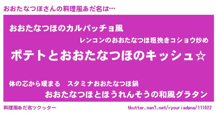 | 男性向けラノベタイトル風あだ名 | 『おおたなつほの嫁は女の子じゃないと思った?』 |