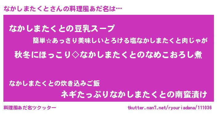 | ピコ太郎風あだ名 | 『ナカ三郎』『ナコ八郎』『ピコナ郎』 |