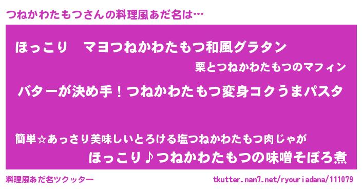 | ヘコむあだ名 | 『つねにー』『つねかわたもつ(笑)』 |