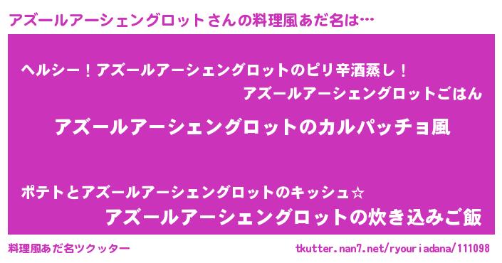 | 男性向けラノベタイトル風あだ名 | 『魔弾の王とアズールアーシェングロット』 |