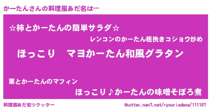 | ヘコむあだ名 | 『かーにー』『かーたん(遠い目)』 |