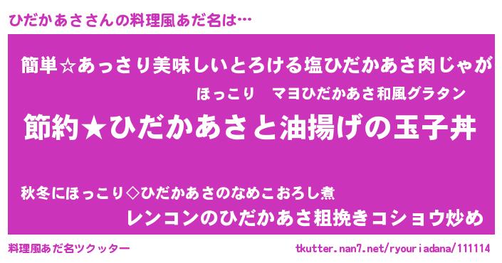 | 女子向けラノベタイトル風あだ名 | 『ひだかあさ姫と円卓の騎士』 |