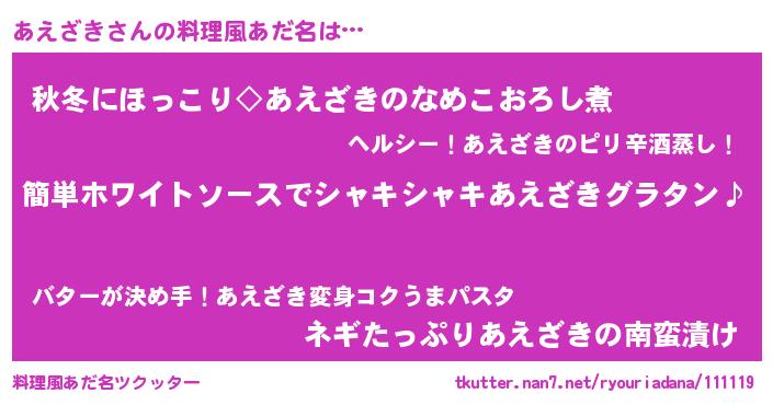 | ヘコむあだ名 | 『あえお』『あえもー』『なまこ酢』 |