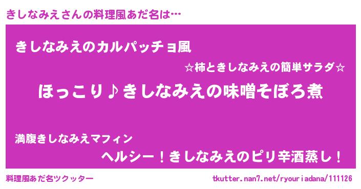 | 男性向けラノベタイトル風あだ名 | 『きしなみえの憂鬱』『緋弾のキシナミエ』 |