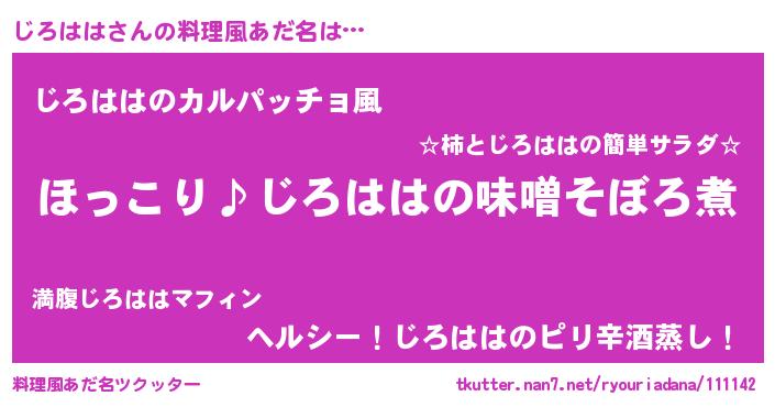 | 意味不明あだ名 | 『ペロリンじろはは』『自称じろはは』 |