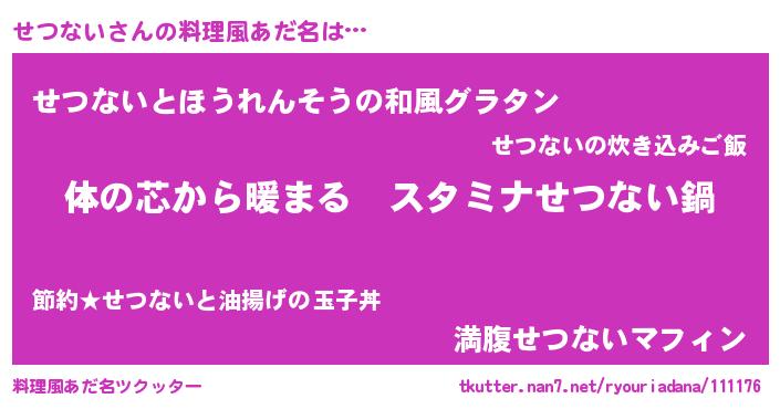 | 女子向けラノベタイトル風あだ名 | 『せつないの雑貨屋さん』 |