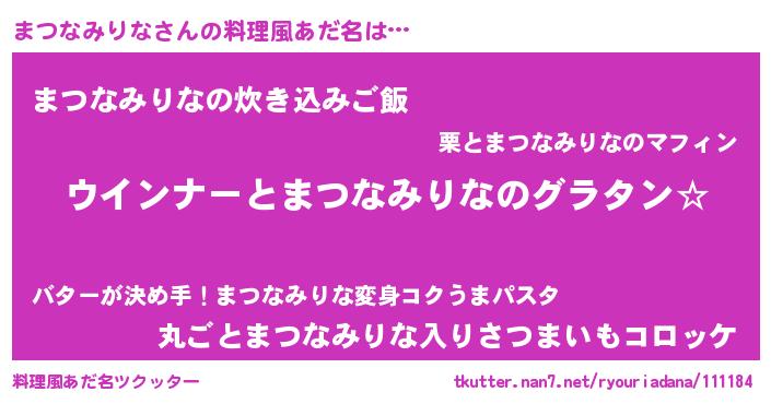 | 胡散臭い通販商品みたいなあだ名 | 『世界が平和になる高級そうな皿…その名も「まつなみりな」』 |