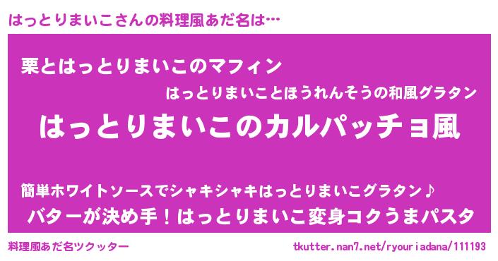 | 意味不明あだ名 | 『住所不定無職はっとりまいこ(5歳)』 |