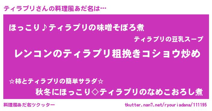 | 意味不明あだ名 | 『自称ティラプリ』『ペロリンティラプリ』 |