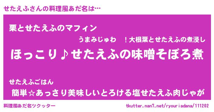 | 意味不明あだ名 | 『ペロリンせたえふ』『永久保存せたえふ』 |