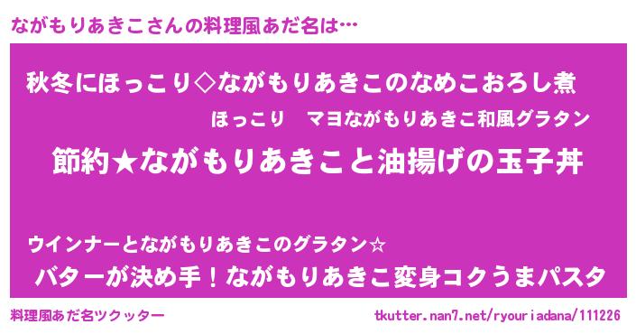 | 意味不明あだ名 | 『ペロリンながもりあきこ』 |