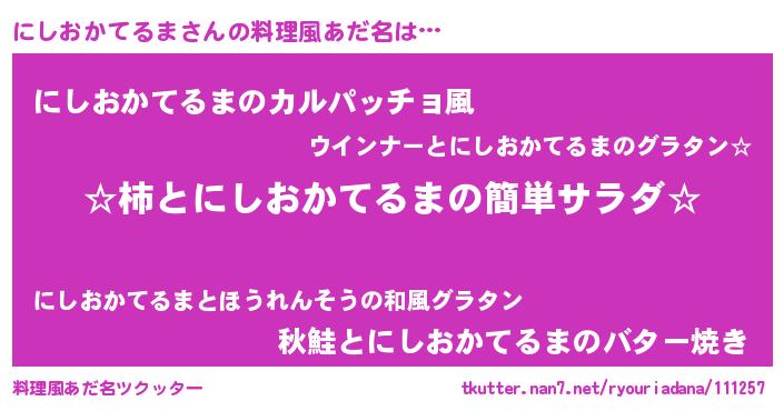 | 意味不明あだ名 | 『住所不定無職にしおかてるま(56歳)』 |