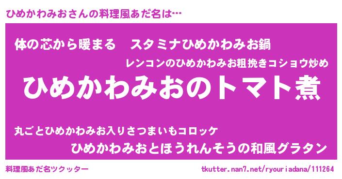 | 男性向けラノベタイトル風あだ名 | 『おまえをオタクにしてやるから、俺をひめかわみおにしてくれ! 』 |