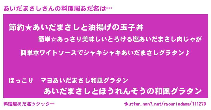 | 女子向けラノベタイトル風あだ名 | 『あいだまさし様がみてる』 |
