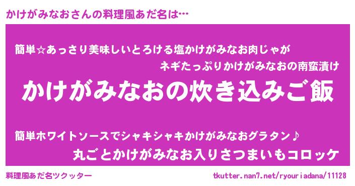 | 可愛いあだ名 | 『かーみん』『かけがみなおママ』 |