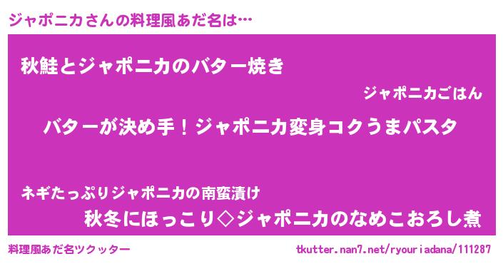 | 男性向けラノベタイトル風あだ名 | 『おまえをオタクにしてやるから、俺をジャポニカにしてくれ! 』 |