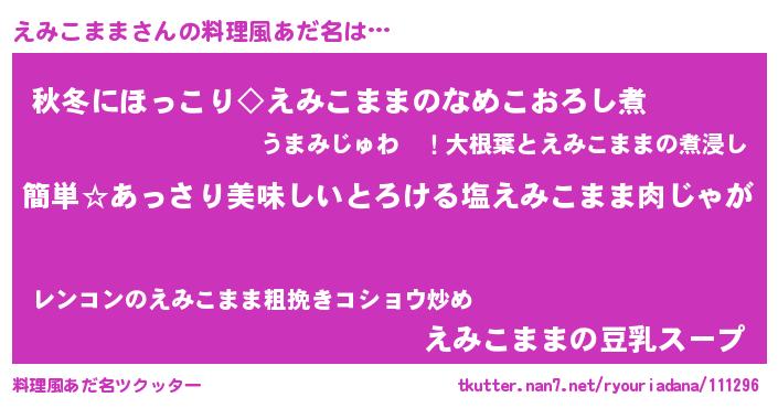 | 意味不明あだ名 | 『永久保存えみこまま』『自称えみこまま』 |