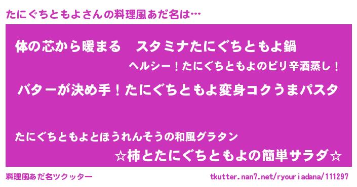 | 男性向けラノベタイトル風あだ名 | 『ノーゲーム・ノータニグチトモヨ』 |