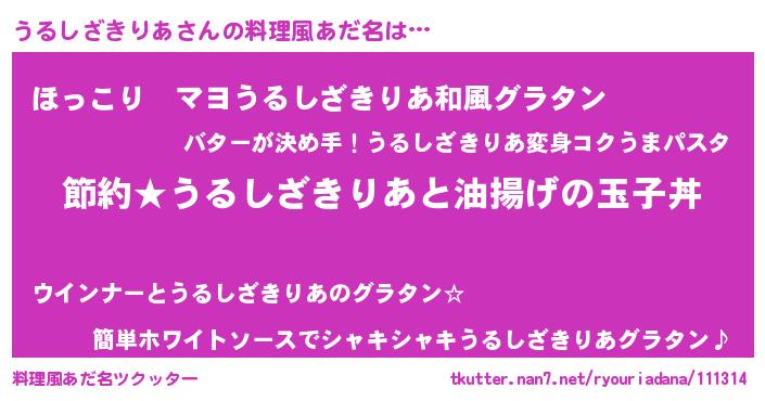 | ヘコむあだ名 | 『うるにゅー』『うるっ子』 |