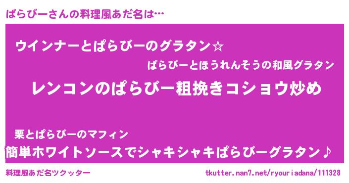 | 意味不明あだ名 | 『自称ぱらびー』『ぱらびーフォーエバー』 |