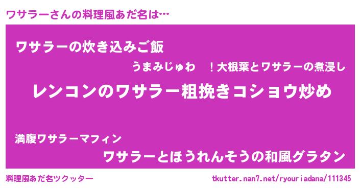 | 女子向けラノベタイトル風あだ名 | 『ワサラーアンティーク』 |