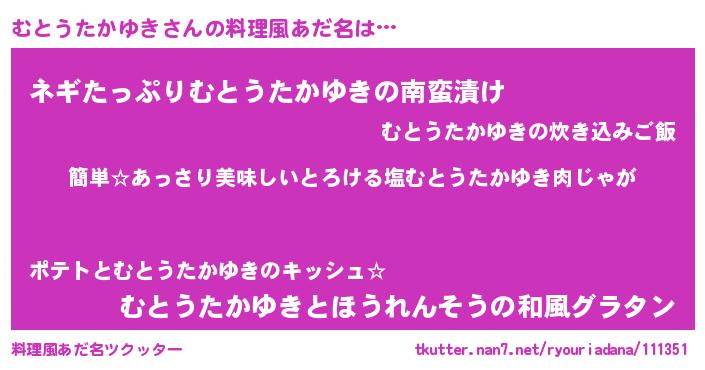 | ヘコむあだ名 | 『むとうたかゆき(震え声)』『むとにゅー』 |
