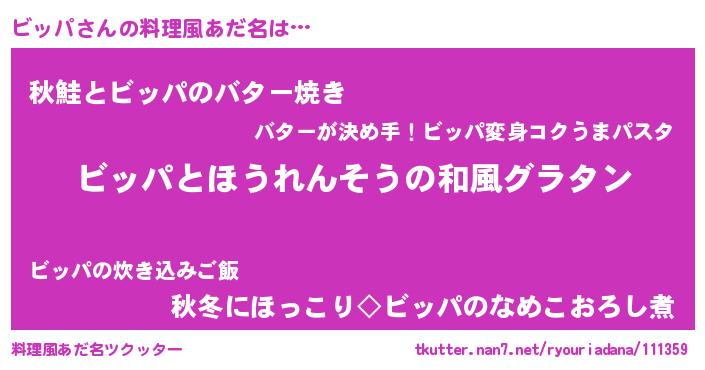 | ヘコむあだ名 | 『ビッパ(笑)』『ビッにゅー』 |