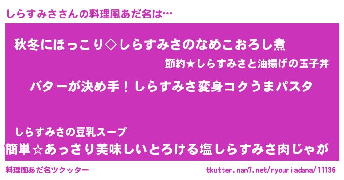 | ヘコむあだ名 | 『しらすみさ(遠い目)』『しらにゅー』 |
