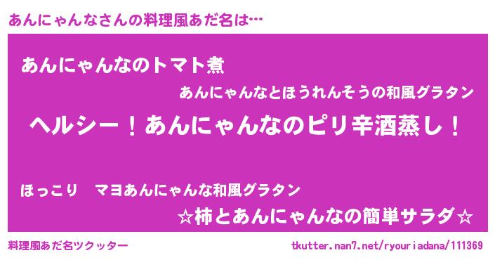 | 意味不明あだ名 | 『自称あんにゃんな』 |