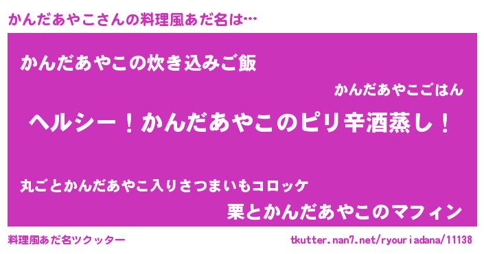 | 男性向けラノベタイトル風あだ名 | 『Re:かんだあやこから始める異世界生活』 |