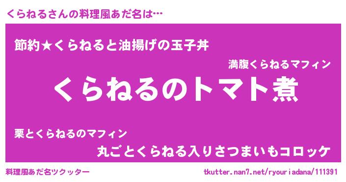 | ヘコむあだ名 | 『くらふぇ~』『くらねる(遠い目)』 |