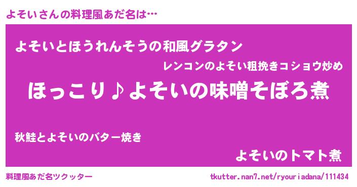 | ヘコむあだ名 | 『よそにー』『よそい(笑)』『よそを』 |