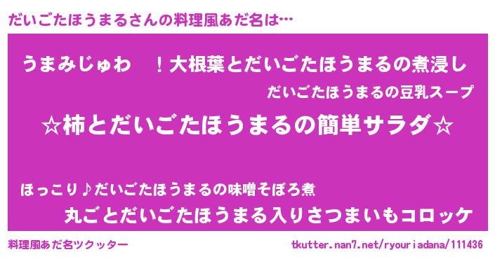 | 男性向けラノベタイトル風あだ名 | 『冴えないだいごたほうまるの育てかた』 |